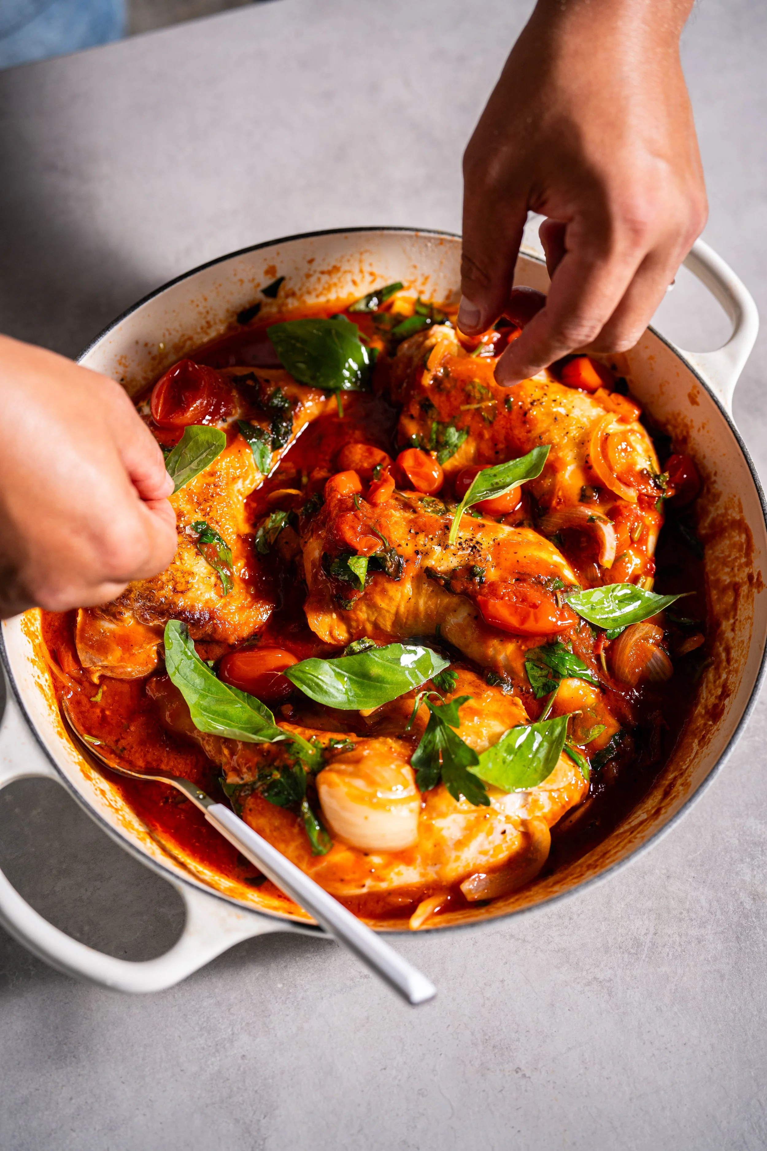 Serve with crusty bread, pasta or soft polenta to soak up the rich tomato and herb sauce.